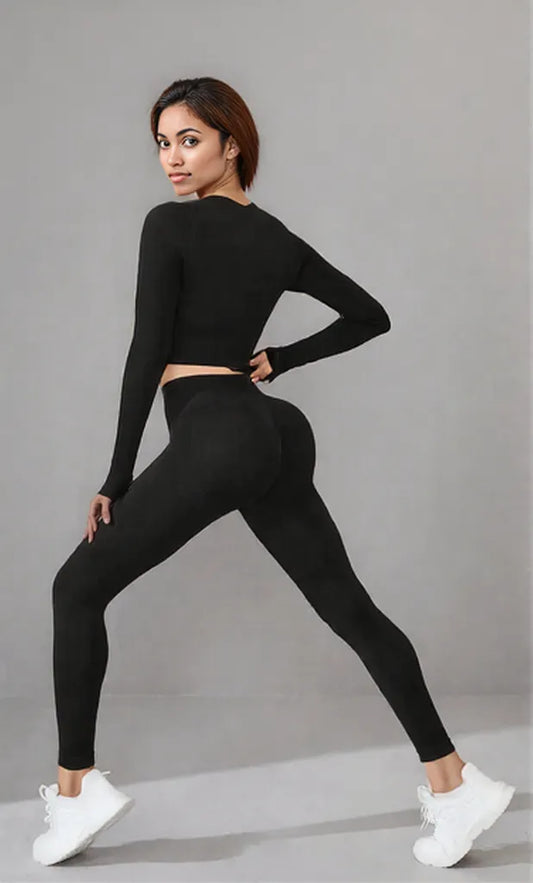 Back Crisscross Round Neck Long Sleeve Top and Leggings Active Set