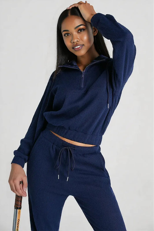 Drawstring Half Zip Hoodie and Joggers Active Set