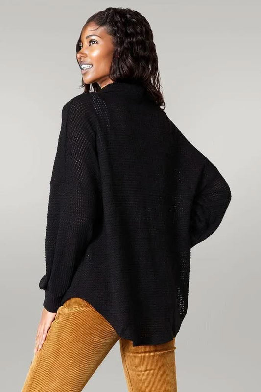 Double Take Waffle-Knit Collared Neck Dropped Shoulder Shirt