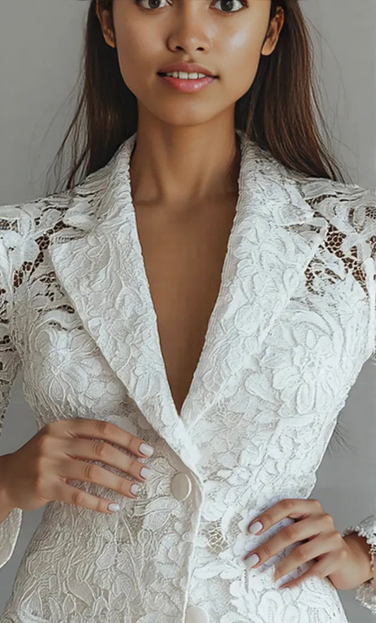 Floral Pattern Lace Single-Breasted Blazer