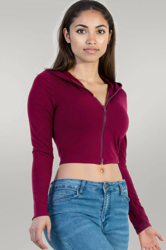 French Terry Crop Zip Up Hoodie