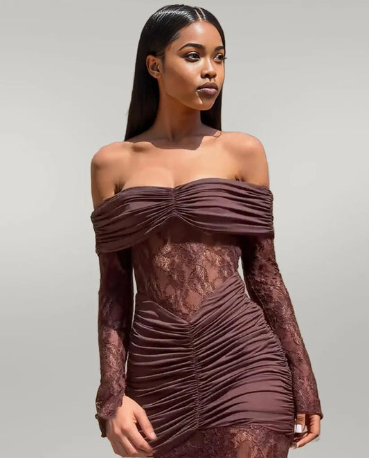 Floral Print Mesh Sweetheart Ruffled Off Shoulder Ruched Mini Dress