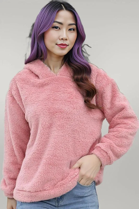 Fuzzy Long Sleeve Hoodie with Ears
