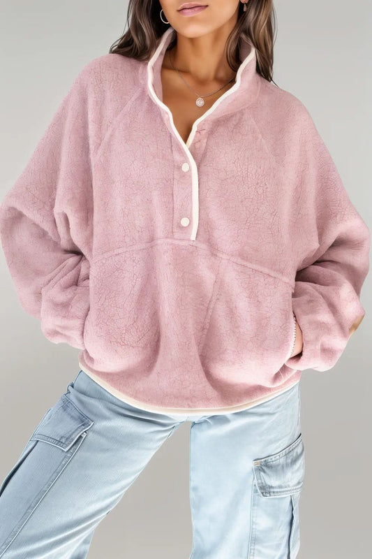 Half Snap Long Sleeve Sweatshirt with Side Slit Pockets