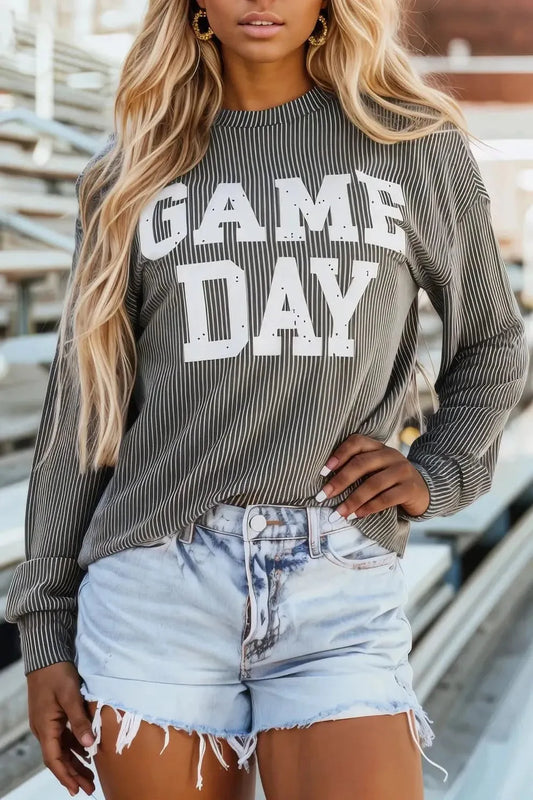 GAME DAY Striped Round Neck Long Sleeve Top