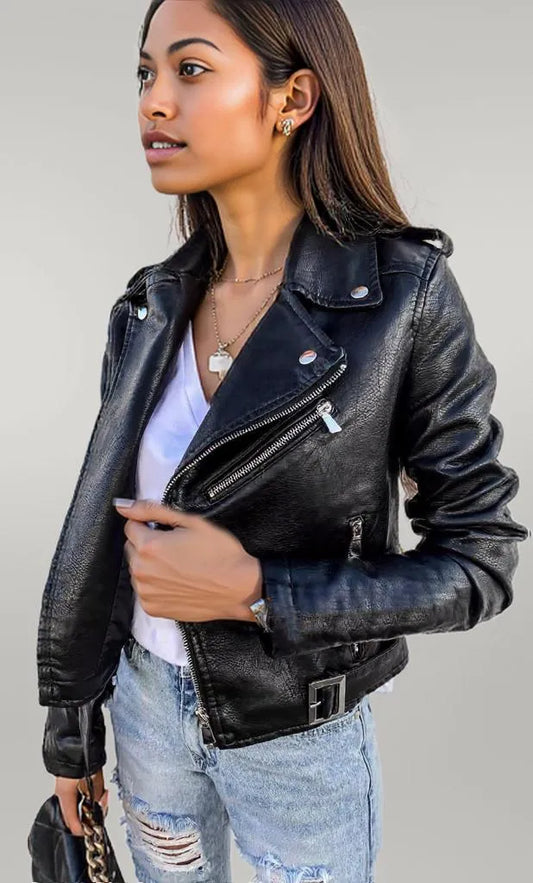 Full Size Zip Up Leather Motorcycle Biker Jacket