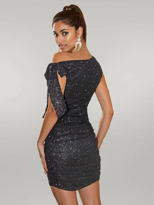 Glitter Tied One Shoulder Mini Dress