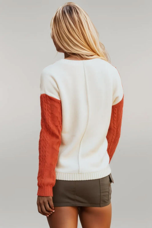 Gold Flame Colorblock Patched Pocket Drop Shoulder Sweater