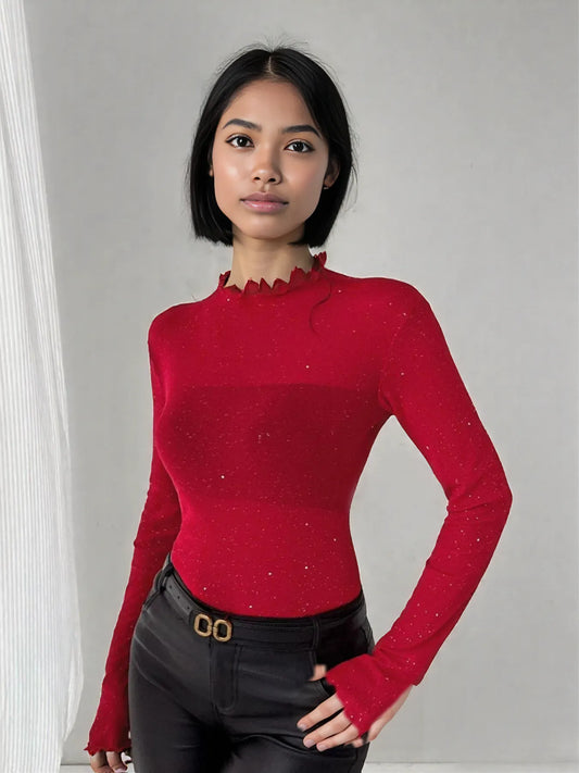 Glitter Long Sleeve Fitted Top