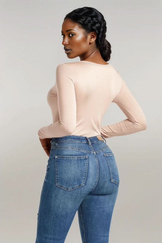 Half Zip Scoop Neck Long Sleeve Bodysuit