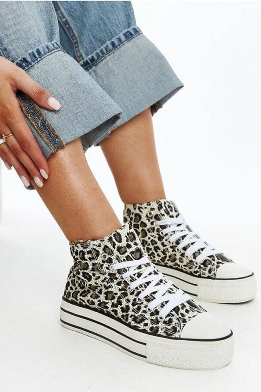 High-Top Platform Chunky Sneaker Boots with Lace-Up