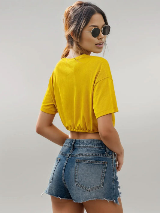 Ivy Lane Drawstring Round Neck Short Sleeve T-Shirt