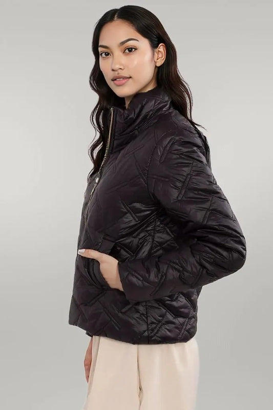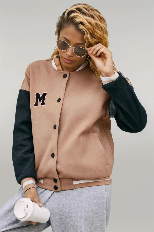 Ivy Lane Contrast Baseball Collar Snap Down Jacket