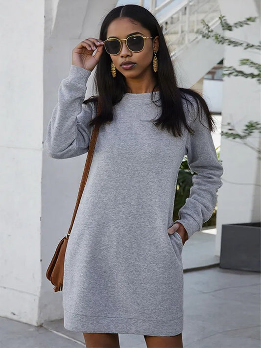 Ivy Lane Round Neck Long Sleeve Mini Dress with Pockets