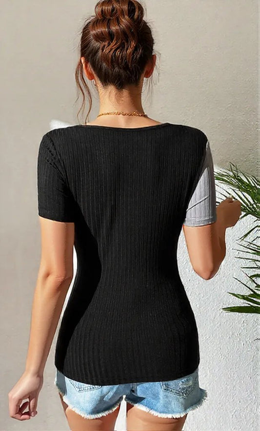 Ivy Lane Contrast Cutout Short Sleeve T-Shirt