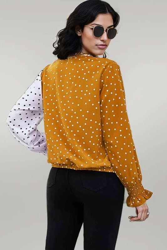 Ivy Lane Polka Dot Surplice Neck Lantern Sleeve Blouse