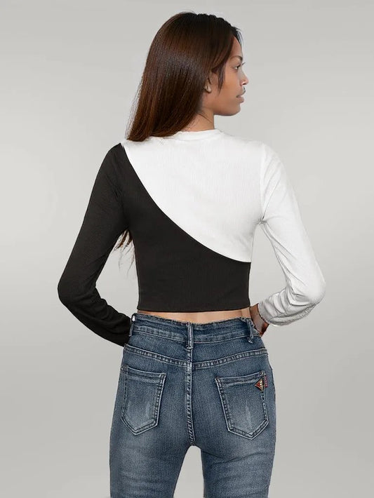 Ivy Lane Cropped Contrast Color Round Neck Short Sleeve Tee