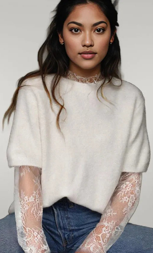 Lace Sleeve Patchwork Faux Two-piece Fuzzy SweaterRegular price $65.99Regular priceUnit price / per-