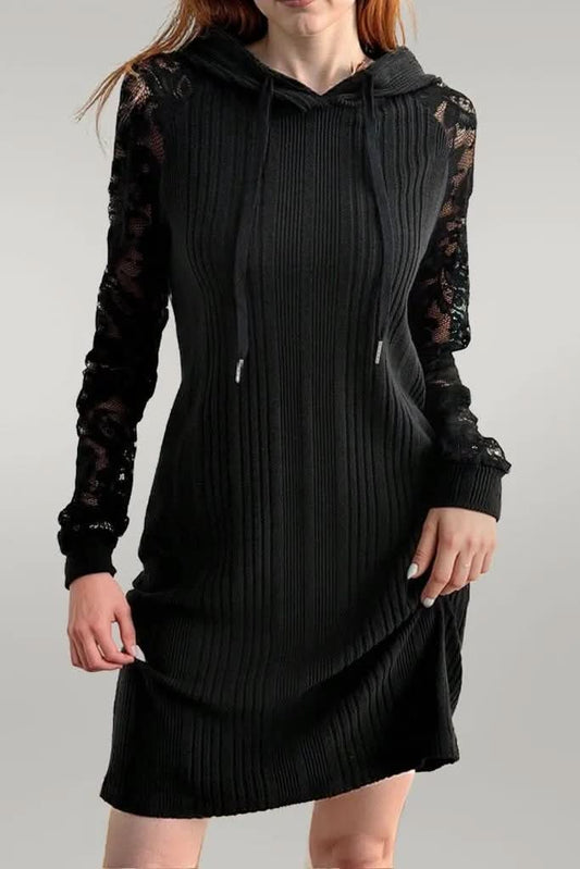 Lace Patchwork Long Sleeve Hooded DressRegular price $54.99Regular priceUnit price / per-