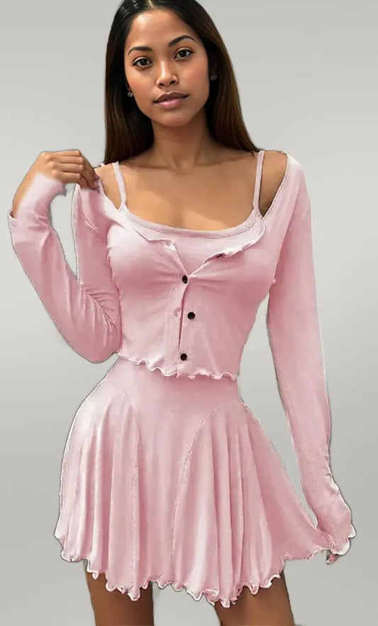 Long Sleeve Crop Top and Cami Dress Set
