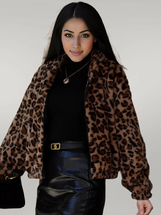 Leopard Zip Up Hooded Outerwear