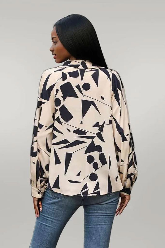Perfee Printed Johnny Collar Blouse