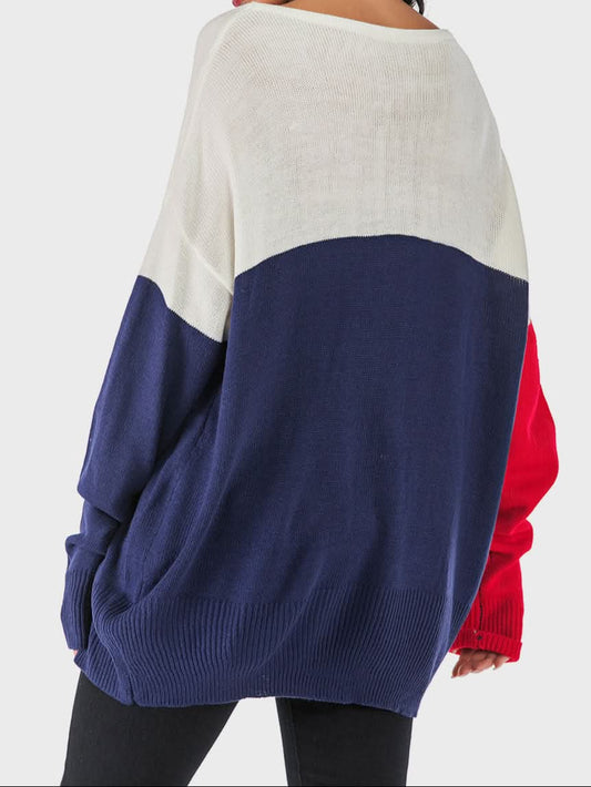 Perfee US Flag Boat Neck Long Sleeve Knit Top
