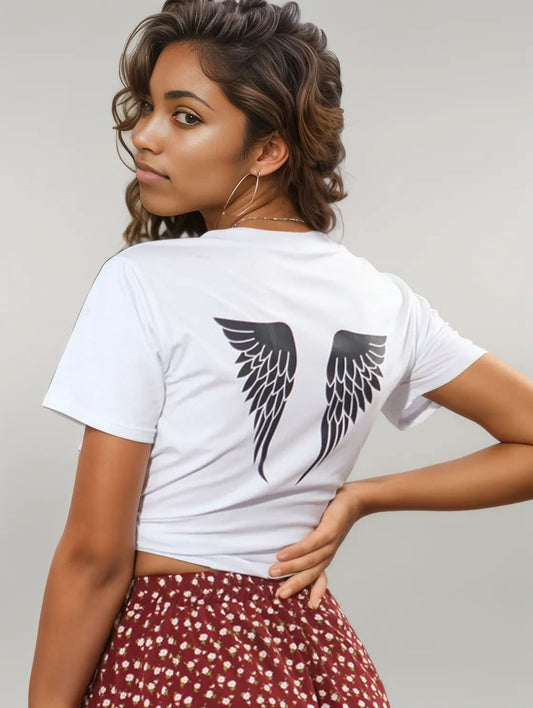 Perfee ANGEL Round Neck Short Sleeve T-Shirt