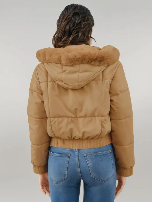 Pocketed Long Sleeve Cropped Hooded Winter Coat