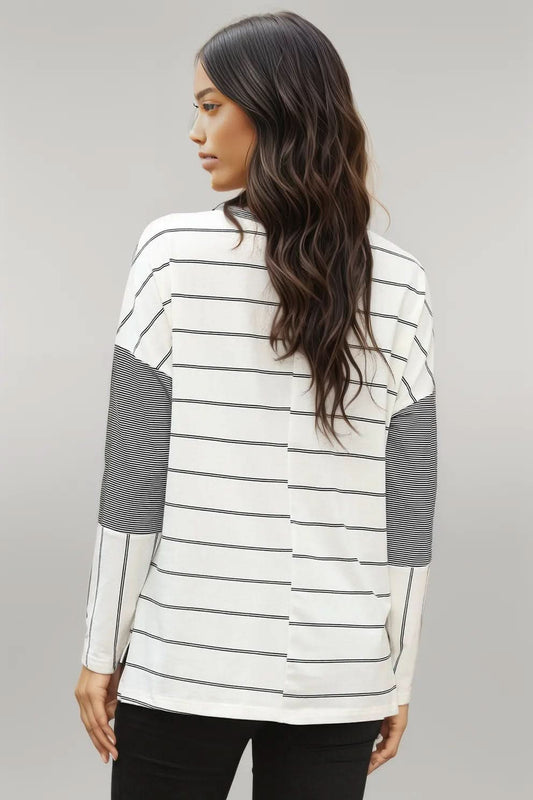 Pocketed Striped Round Neck T-Shirt