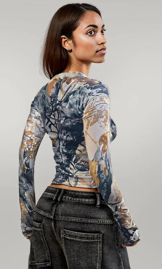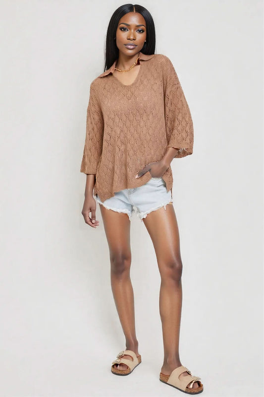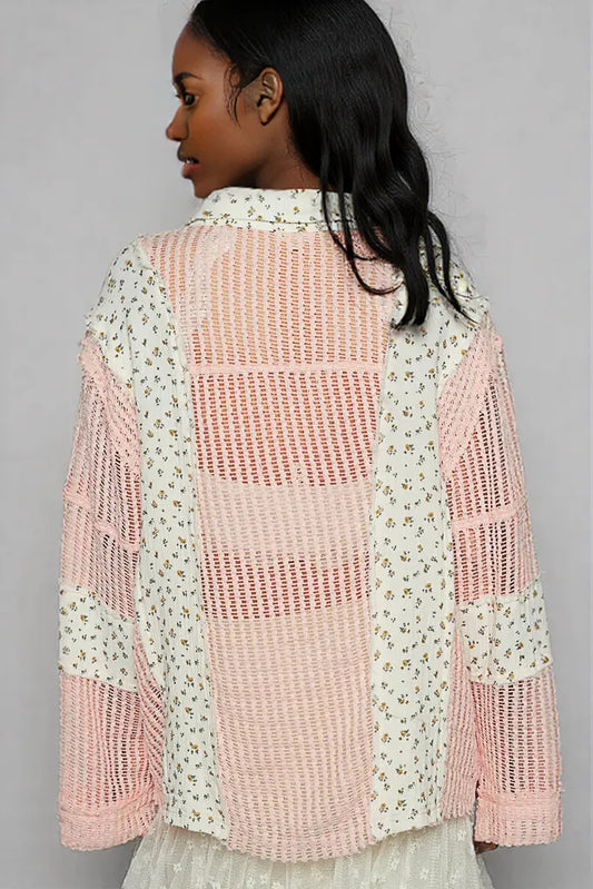 POL Floral Crochet Patchwork Long Sleeve Shirt