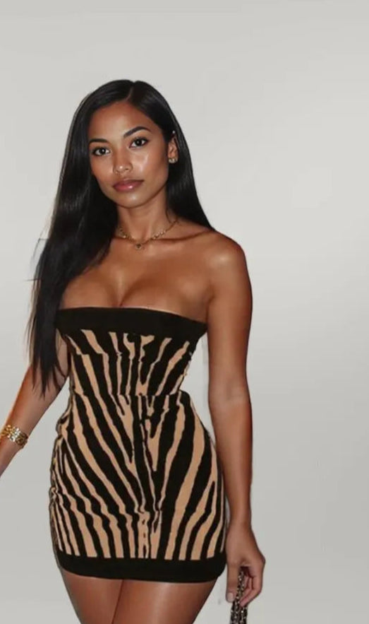 Sexy Zebra Print Bandeau Backless A-Line Mini Dress