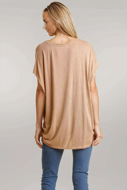 Short Sheer Dolman Sleeve Scoop Neck Top With Side Slit