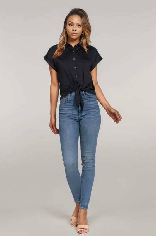 Short Sleeve Round Neck Crossover Multi Way Tie Top
