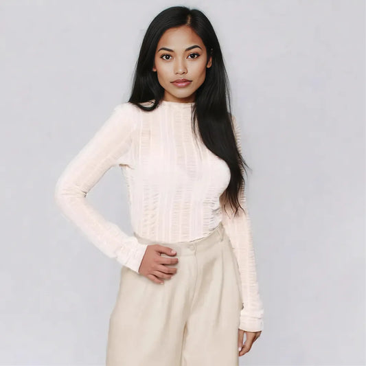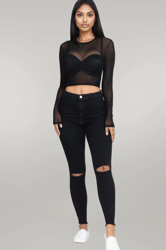 Sexy Sheer Mesh Long Sleeve Crop Top