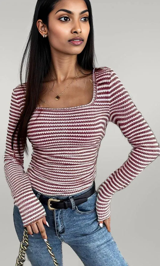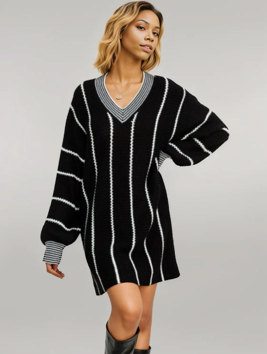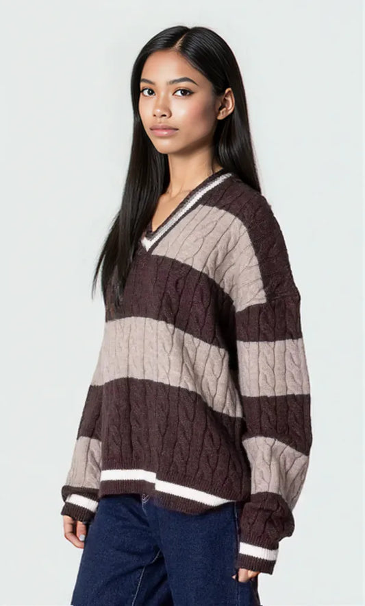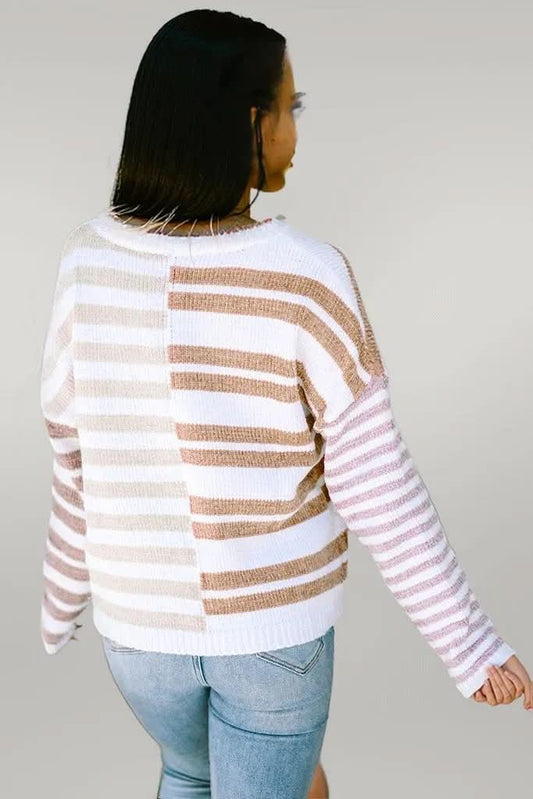 Stripe Blocked Drop Shoulder Slouchy Sweater