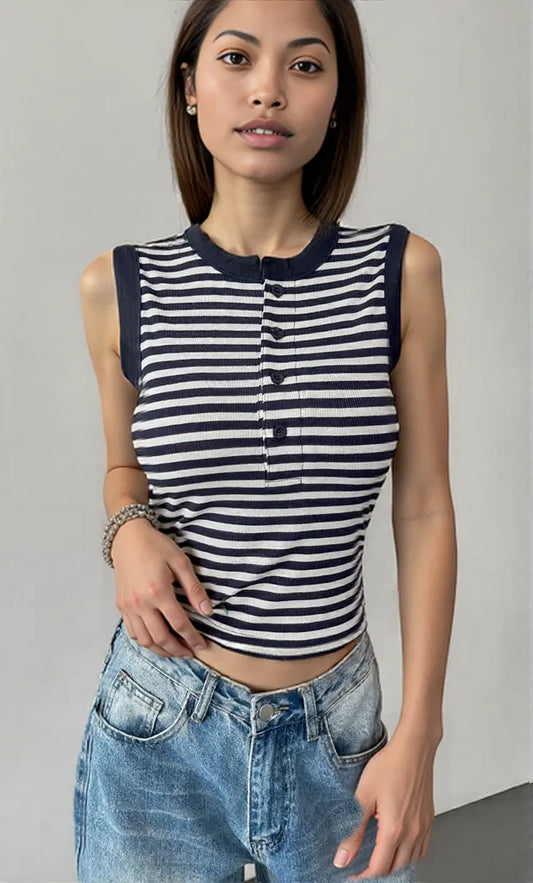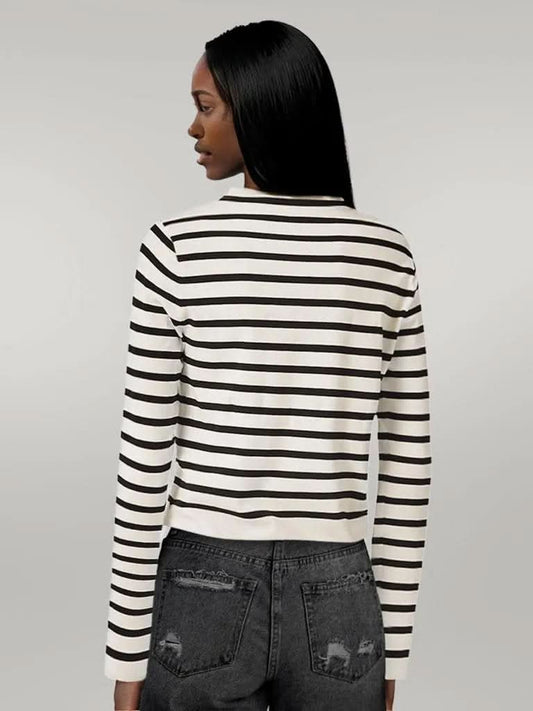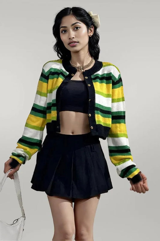 Striped Round Neck Button Up Long Sleeve Cardigan