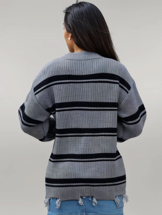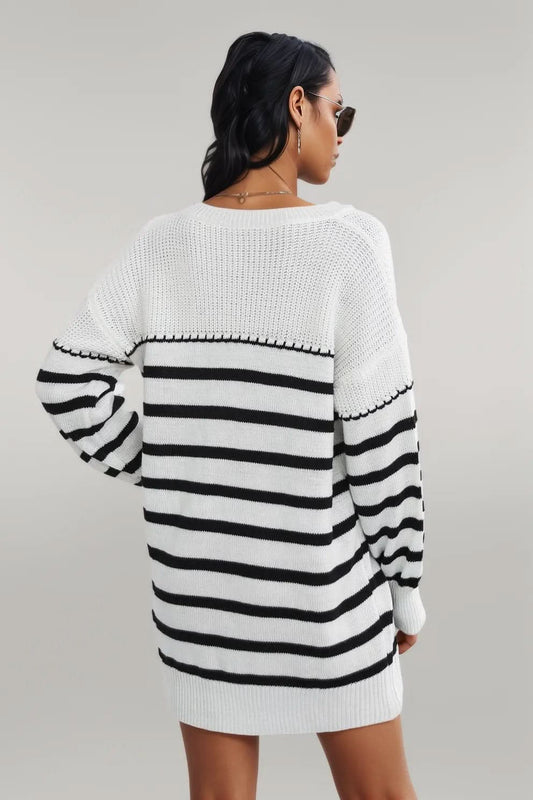 Striped Dropped Shoulder Long Sleeve Cardigan