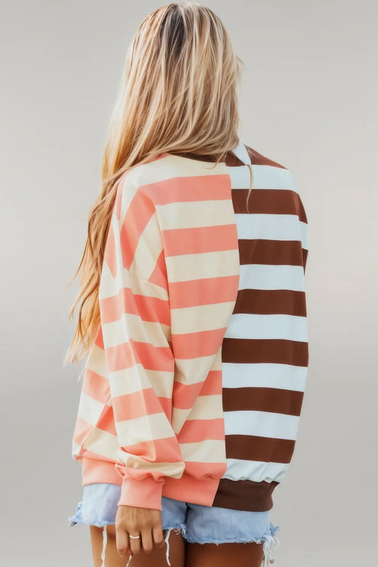 Brown Stripe Color Block Drop Shoulder Pullover Sweatshirt