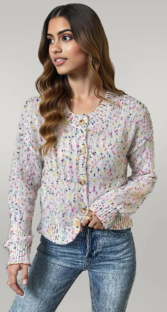 Angel Wings Button Up Dropped Shoulder Cardigan