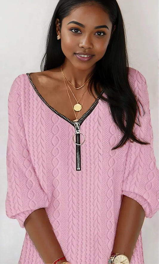 Zip Detail Textured Knit Mini Sweater