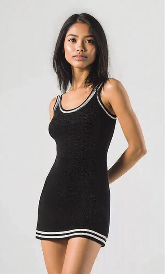 Sleeveless Ribbed Knit Sweater Dress with Contrast Trim