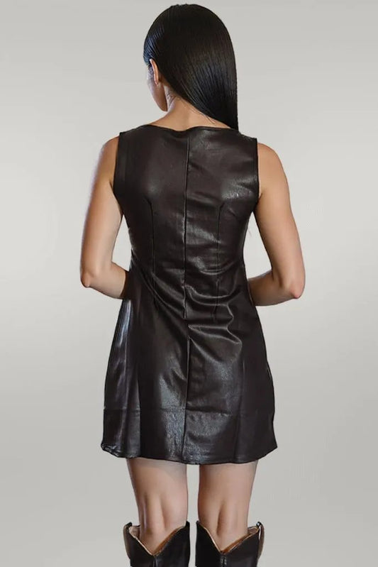 Wild Ginger Vegan Leather Sleeveless Mini Dress