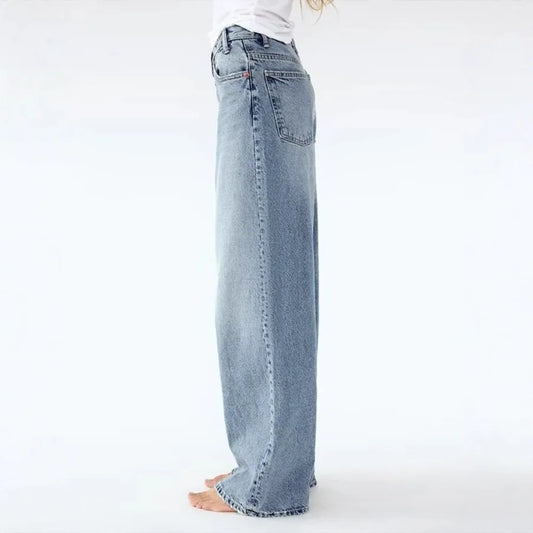 Sail Blue Wide Leg Pocketed High Waist Jeans