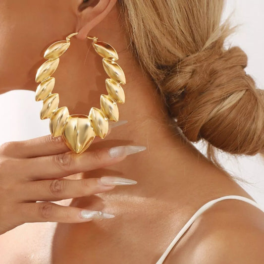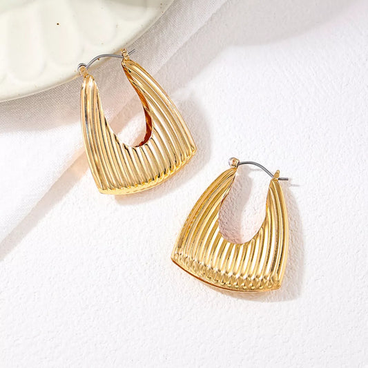 18K Gold-Plated Alloy Ribbed Triangular Hoop Earrings