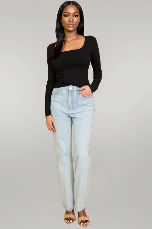 Basic Bae Asymmetrical Neck Long Sleeve Top
