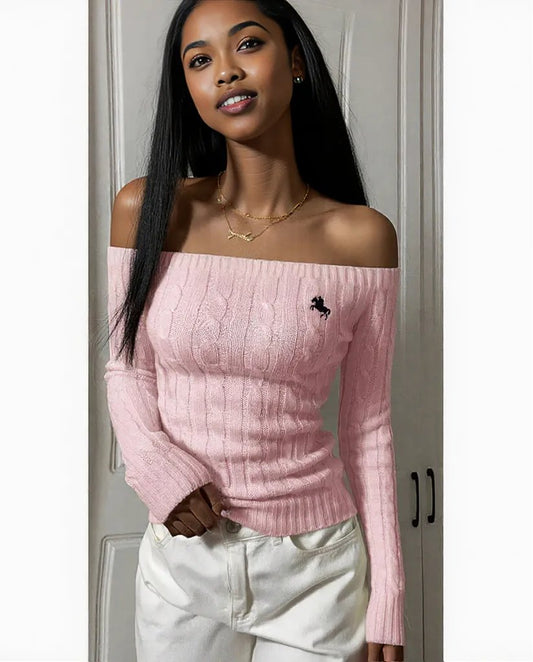 Off-Shoulder Long Sleeve Knit Top
