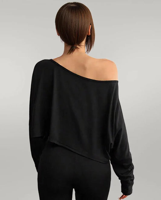 Off-Shoulder Long Sleeve Fitted T-Shirt