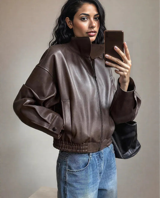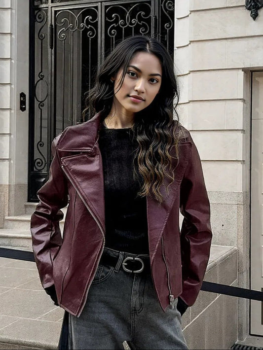 Full Size Zip Up Leather Motorcycle Biker Jacket
