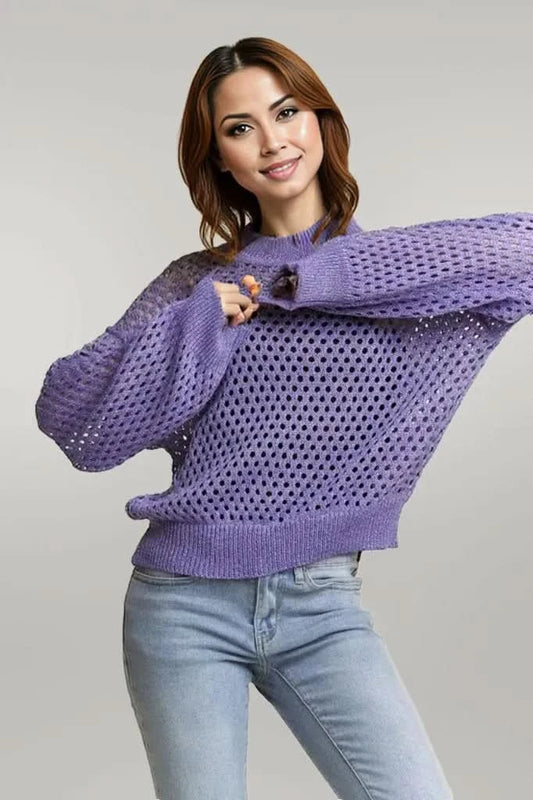 Openwork Round Neck Long Sleeve SweaterRegular price $51.99Regular priceUnit price / per-